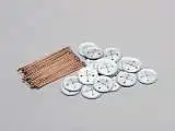 Одной из особенностей приварных шпилек для крепления теплоизоляции является их медное покрытие. Такое покрытие наносится гальваническим способом (гальваникой), что позволяет равномерно покрыть всю поверхность шпильки тонким слоем меди. Медное покрытие выполняет не только декоративную функцию, придавая шпилькам эстетичный вид, но и играет важную роль в защите металла от коррозии. Тонкий слой металла на поверхности предотвращает контакт стали с влагой и кислородом. Медь эффективно защищает металл от окисления и других коррозийных процессов, значительно увеличивая срок службы крепежа как самих шпилек, так и всей системы крепления теплоизоляции к вентиляционным коробам.